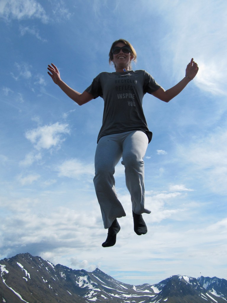 Jumping on top of a mountain in Alaska